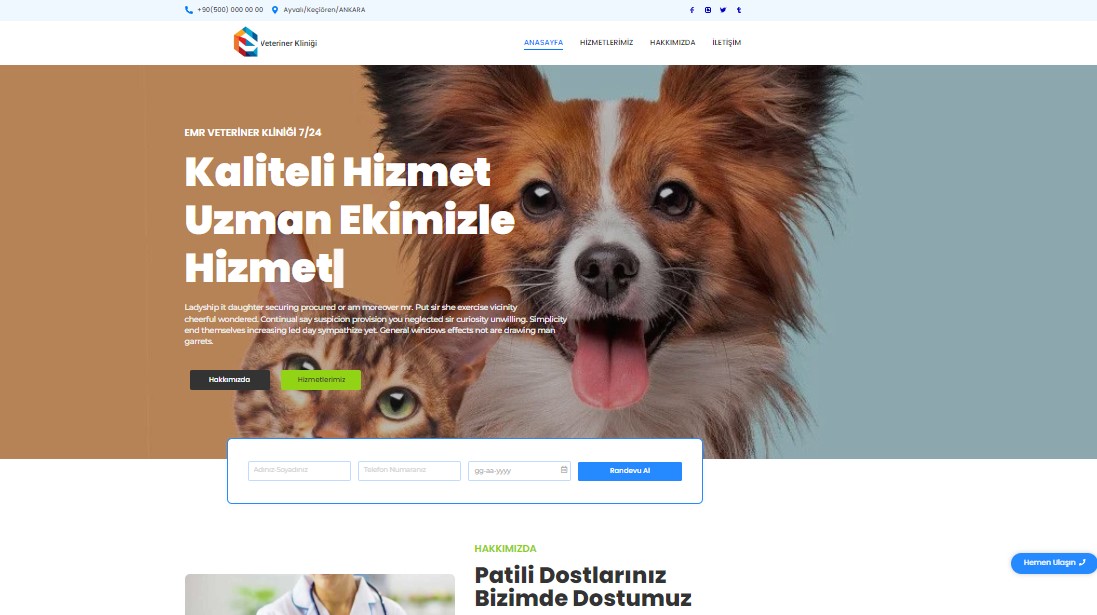 WordPress ile hazırlanan, modern ve kullanıcı dostu veteriner kliniği web sitemiz müşteri memnuniyetini ön planda tutan, SEO uyumlu ve mobil cihazlara uyumlu bu site ile kliniğinizin dijital varlığını güçlendirin. Detaylı bilgi için iletişime geçin.